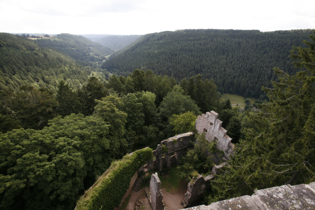 Durch das historische Städtle mit Fachwerkhäusern gelangen wir an die Burgruine. Zu erkennen sind noch die beiden Halsgräben, die Toranlage, die Palastruine, ein Kellergewölbe, Teile der Schildmauer, sowie weitere Mauerreste von Bering und Zwingeranlage. Der 28 m Bergfried kann bestiegen werden mit einen gigantischen Rundblick über den Schwarzwald. Das lohnt sich, die vielen Stufen in Kaufen zu nehmen.